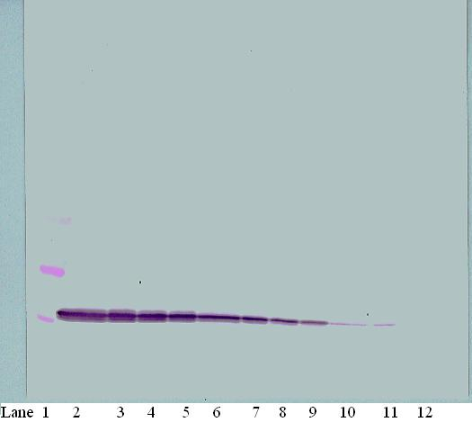 To detect hIP-10 by sandwich ELISA (using 100 μL/well antibody solution) a concentration of 0.5 - 2.0 μg/mL of this antibody is required. This antigen affinity purified antibody, in conjunction with our Biotinylated Anti-Human IP-10 (XP-5203Bt) as a detection antibody, allows the detection of at least 0.2 - 0.4 ng/well of recombinant hIP-10.