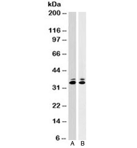 1. Staining of formalin-fixed tissues requires boiling tissue sections in 10mM citrate buffer, pH 6.0, for 10-20 min followed by cooling at RT for 20 minutes.