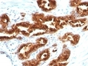 2. The prediluted format is supplied in a dropper bottle and is optimized for use in IHC. After epitope retrieval step (if required), drip mAb solution onto the tissue section and incubate at RT for 30 min.