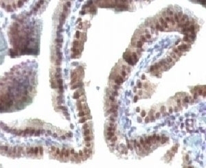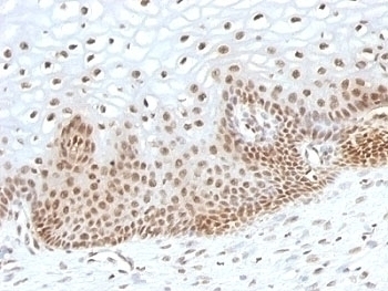 2. The prediluted format is supplied in a dropper bottle and is optimized for use in IHC. After epitope retrieval step (if required), drip mAb solution onto the tissue section and incubate at RT for 30 min.