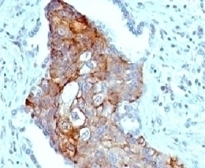 2. The prediluted format is supplied in a dropper bottle and is optimized for use in IHC. After epitope retrieval step (if required), drip mAb solution onto the tissue section and incubate at RT for 30 min.